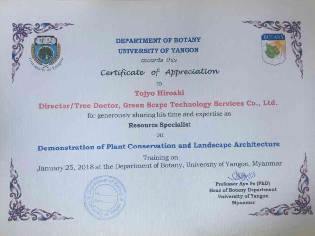 東條広明(樹木医)が、ミャンマー ヤンゴン大学にて現地学生に講義を行いました。